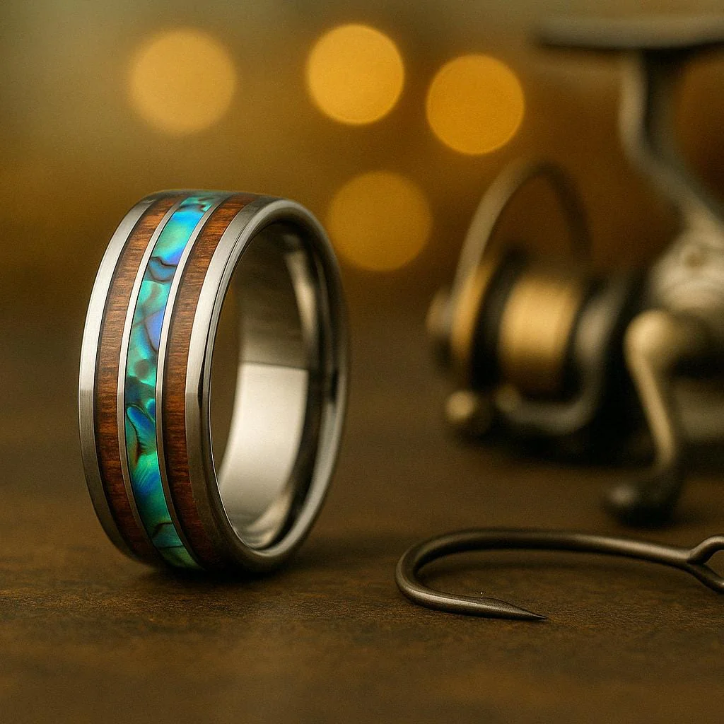 Your perfect day is spent casting and reeling under sunny skies. Own a wedding band that will forever remind you of time well spent by the water, in solitude, and with your mate. You landed the perfect catch, now celebrate a bond that’s deeper than any ocean with a stunning koa wood wedding band.