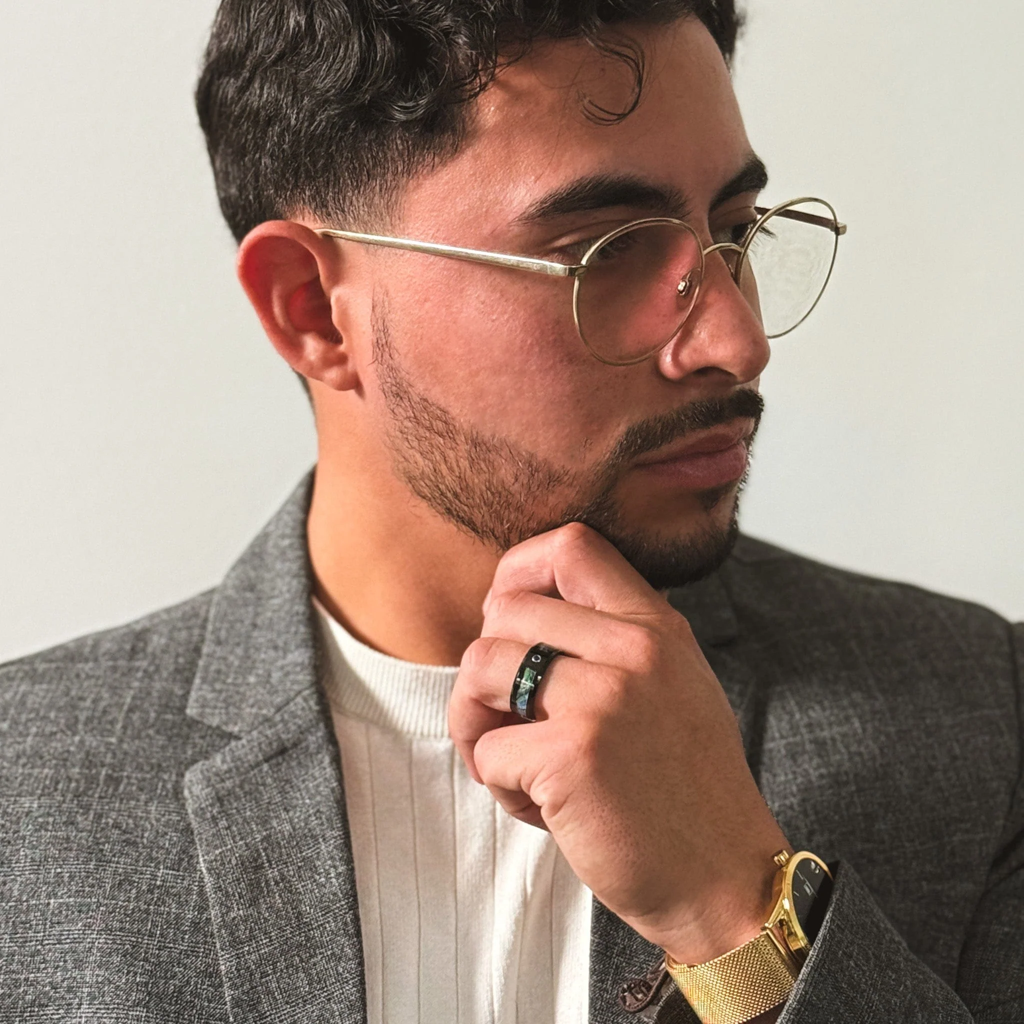Mar means ocean in Spanish, so whether you’re a surfer, a scuba diver, a sailor, or simply someone who enjoys the sea breeze, this men's blue sapphire wedding band is sure to please! Sapphire is just the start — this ring is crafted from NASA-inspired tungsten and genuine abalone shell. Celebrate your bond with an awesomely aquatic treasure.