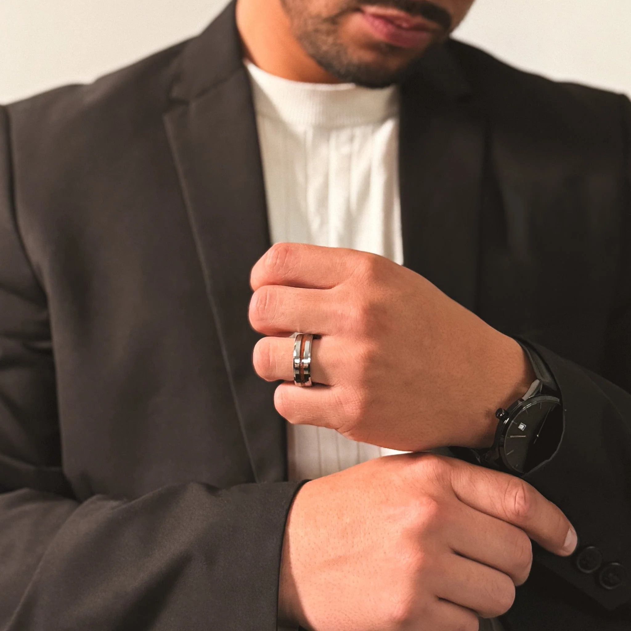 You calmly take the lead and take control while others panic. Noah was the captain of a large wooden vessel. This sleek tungsten and wood ring has all the elements of a Captain- like you.